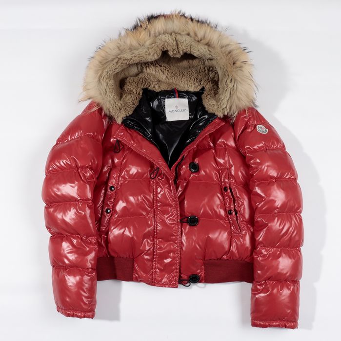 red shiny puffer moncler jacket with furhood Very well made.